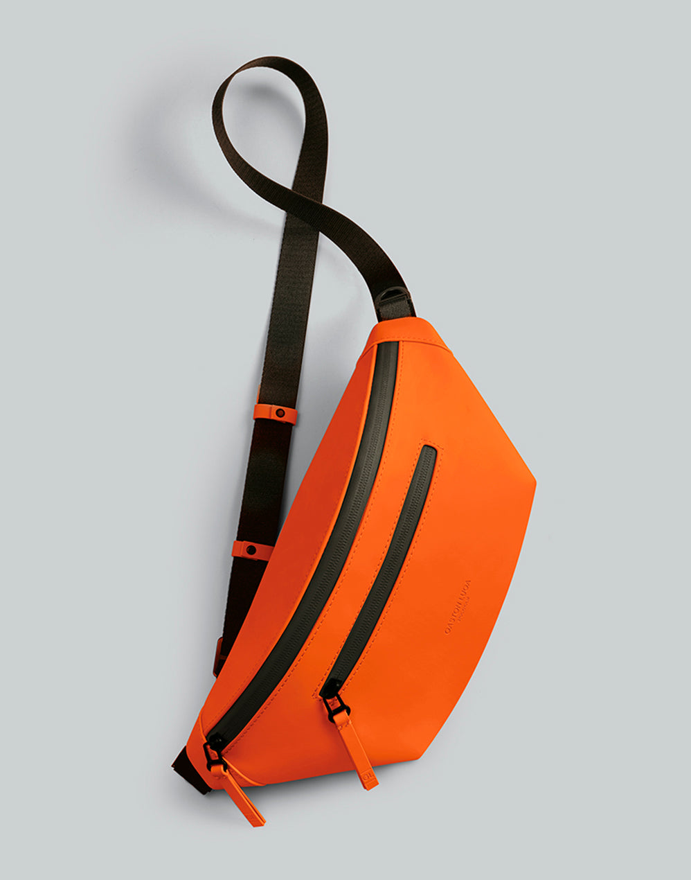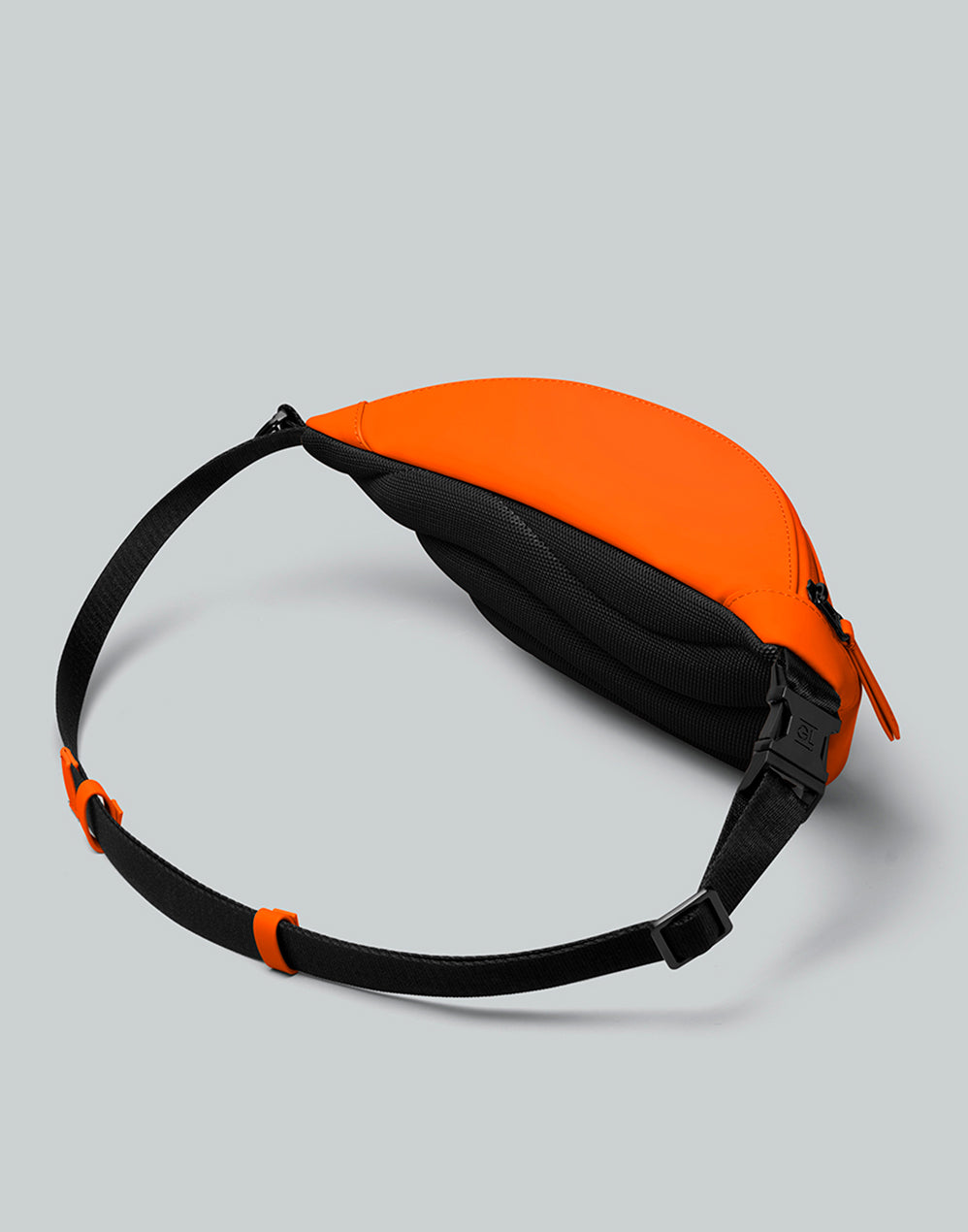 Inspirada en estilos deportivos minimalistas, la cangurera Spläsh está fabricada con material impermeable ecológico. Este diseño elegante cuenta con un bolsillo externo con cierre para objetos pequeños y un compartimento interior con un bolsillo de malla amarilla con cierre. La parte trasera acolchonada y suave tiene un sutil patrón ondulado.