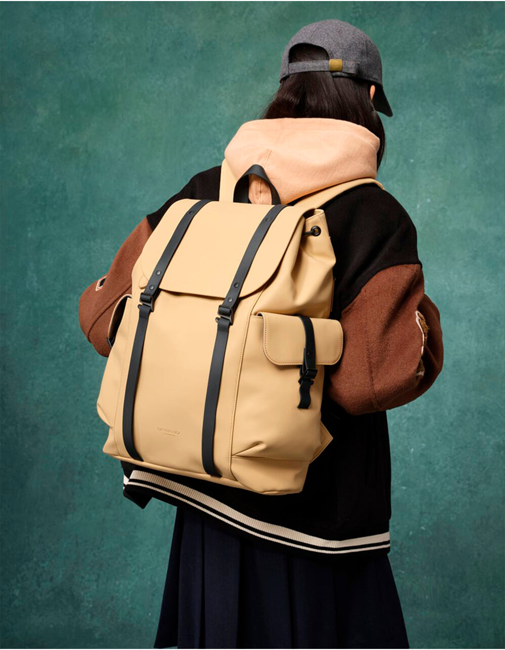 • Material exterior: 100% poliéster reciclado con recubrimiento de poliuretano.