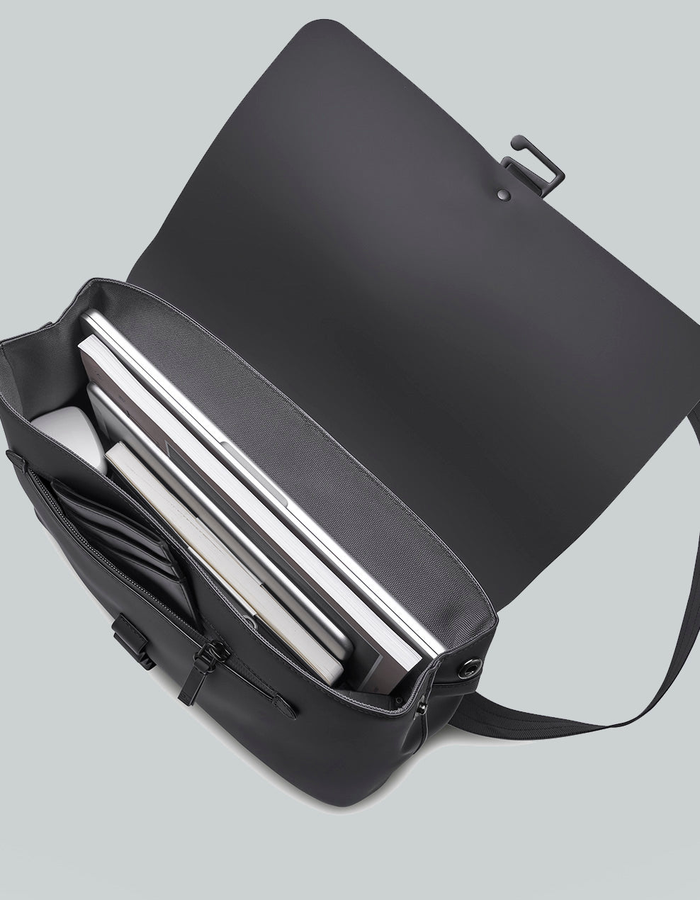 Spläsh Crossbody combina un diseño estilizado con espacio práctico para tu laptop. Fabricado con materiales ecológicos y una resistencia al agua de 8,000 mm, es compatible con la mayoría de las laptops de 11” a 14” y también guarda tus objetos esenciales del día a día. Con bolsillo trasero y correa ajustable, está pensado para profesionales que se mueven entre reuniones, cafés y actividades después del trabajo, asegurando transiciones sin complicaciones durante toda la jornada.